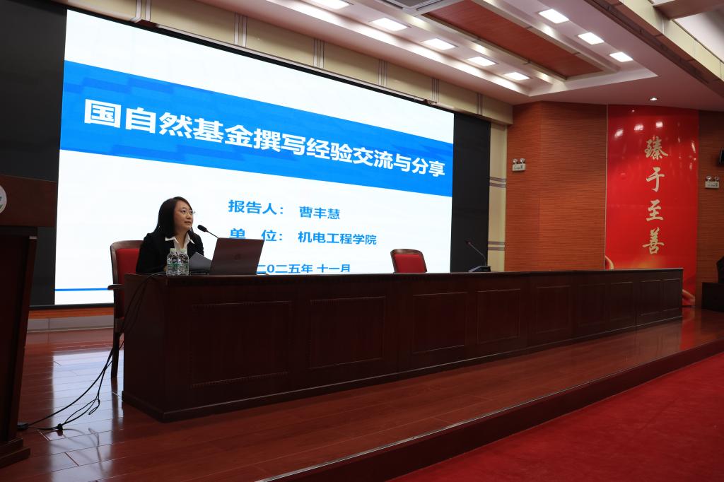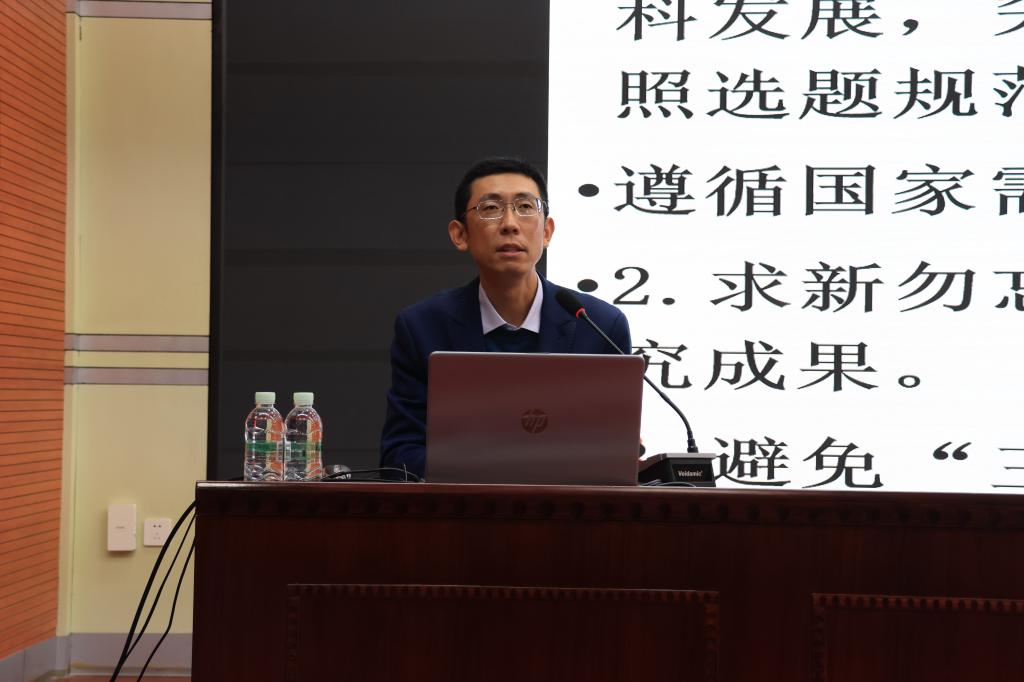 在专家指导环节中,两位具有丰富项目申报经验的教授先后作了专题分享。2项国社科项目负责人、学术理论研究部主任原昊教授以“细密针脚绣出新颖之花”为题,聚焦申报过程中的核心环节,针对常见疑点与难点问题,提出了系列针对性建议,为参会教师提供了扎实可操作的指导。国自然基金项目负责人曹丰慧教授则以“国自然基金撰写经验交流与分享”为主题,结合自身成功申报的实践经验,从选题立意、论证逻辑、研究基础积累以及申报书撰写等分享了宝贵的心得与体会。
